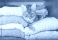 • A domestic Bengal cat hid between stacks of woolen knitwear.