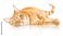 • ginger cat lies on its side and looks at the camera on a white isolated background
