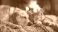 Koty - Golden retriever and tabby cat sleeping together by a cozy fireplace #834903057