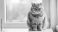 Koty - A grumpy scottish fold cat sits by a window #854890380