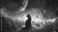 • Whimsical cat astronaut floating in outer space with stars and planets in the background, perfect for sci-fi and fantasy-themed artwork and children's storybooks