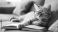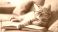 Koty - Cute red cat in glasses lying on sofa with book #909517601