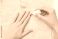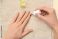 • Female hands applying cuticle oil with brush on beige towel