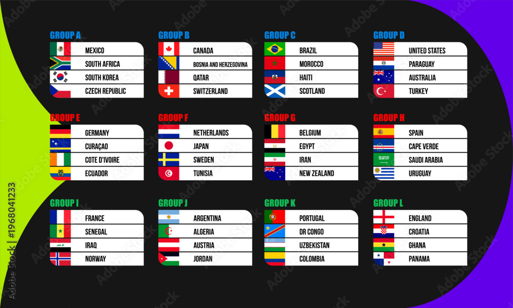 Ludzie - 2026 World Football Tournament Group Stage Draw with National Teams and Flags Infographic #1968041233