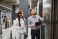 • Seller assisting female customer choosing large tiles