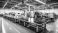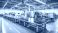 • Modern solar panel manufacturing facility with clean polished floors, advanced machinery, and multiple assembly lines under bright industrial lighting.
