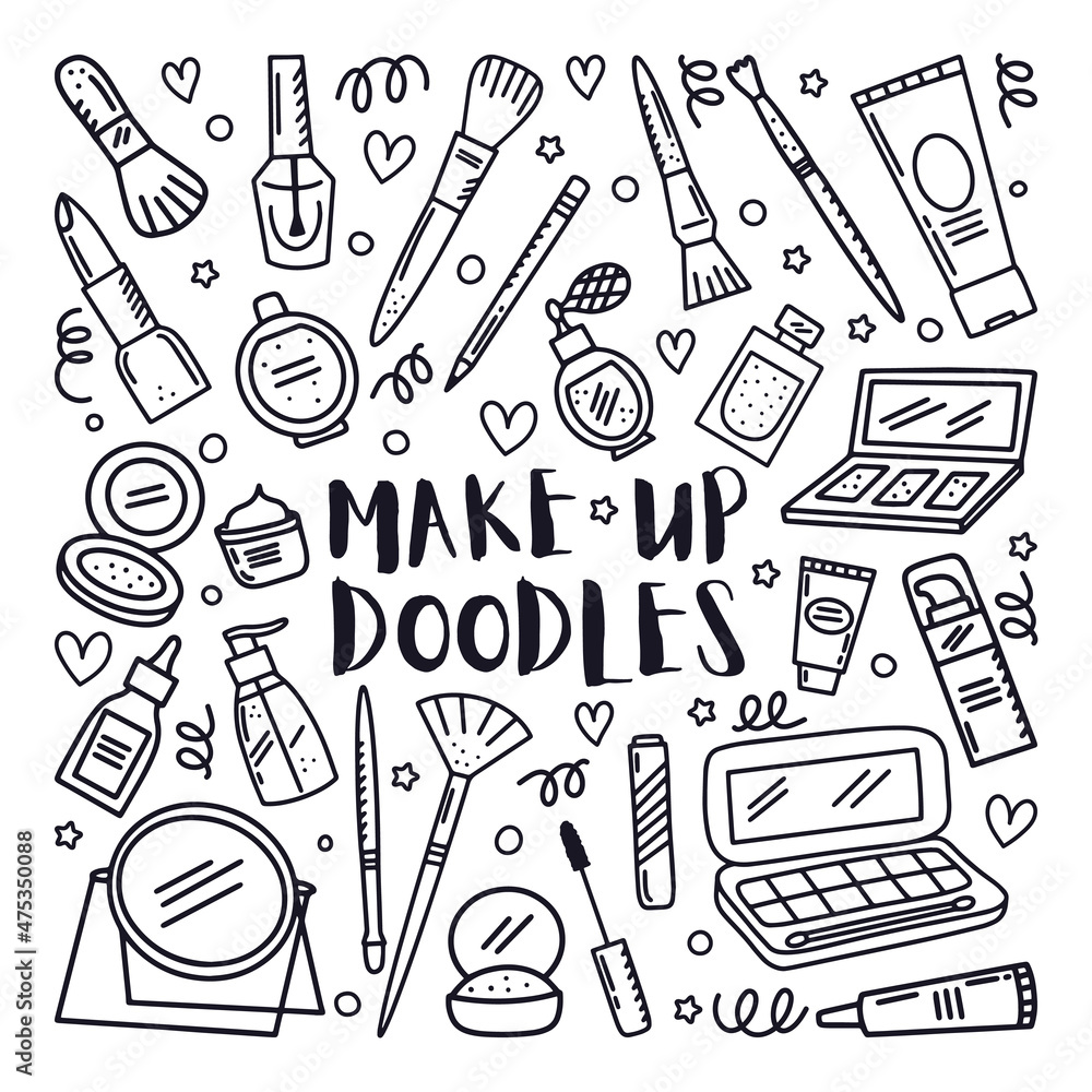 Make up - Doodle beauty make up collection. Set of hand drawn cosmetics elements. Brush, nail polish,... #475350088