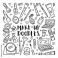 • Doodle beauty make up collection. Set of hand drawn cosmetics elements. Brush, nail polish, foundation, perfume, eye shadow, mascara, mirror, cream, lipstick. Outline vector illustration
