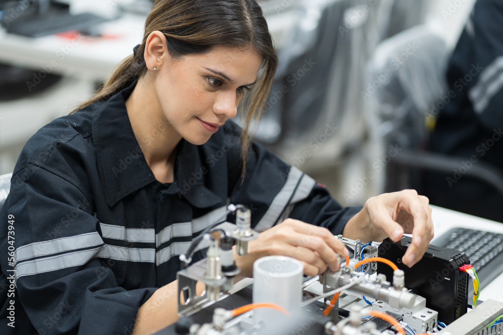 Make up - Female engineer training AI robot training kit and mechatronics engineering in the manufacturing... #560473949