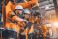 • Engineer team service robot welding working in automation factory. People worker in safety suit work robotic arm software programming or replacing part in automated manufacturing industry technology.