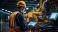 • Engineer check and control welding robotics automatic arms machine in factory automotive industrial. Digital manufacturing operation. Generative AI