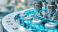 • Close-up of numerous medical vials in a pharmaceutical manufacturing line