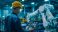 • Manager engineer check and control automation robot arms machine in intelligent factory industrial on real time monitoring system software. Welding robotics and digital manufacturing operation