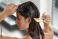 • Beautiful Woman Putting Mask On Long Wet Hair. Hairbrushing