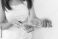 • Sad young Asian girl with hair loss problem. Isolated on white background.