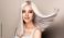 • Beautiful girl with hair coloring in ultra blond. Stylish hairstyle done in a beauty salon. Fashion, cosmetics and makeup