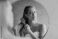 Włosy - Young cute lady wrapped in towel, standing in front of mirror at bathroom and combing her hair... #486444887