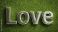 • A 3D-rendered metallic word Love in a polished silver finish, placed on a vibrant green grass background Ideal for valentine day and romantic-themed