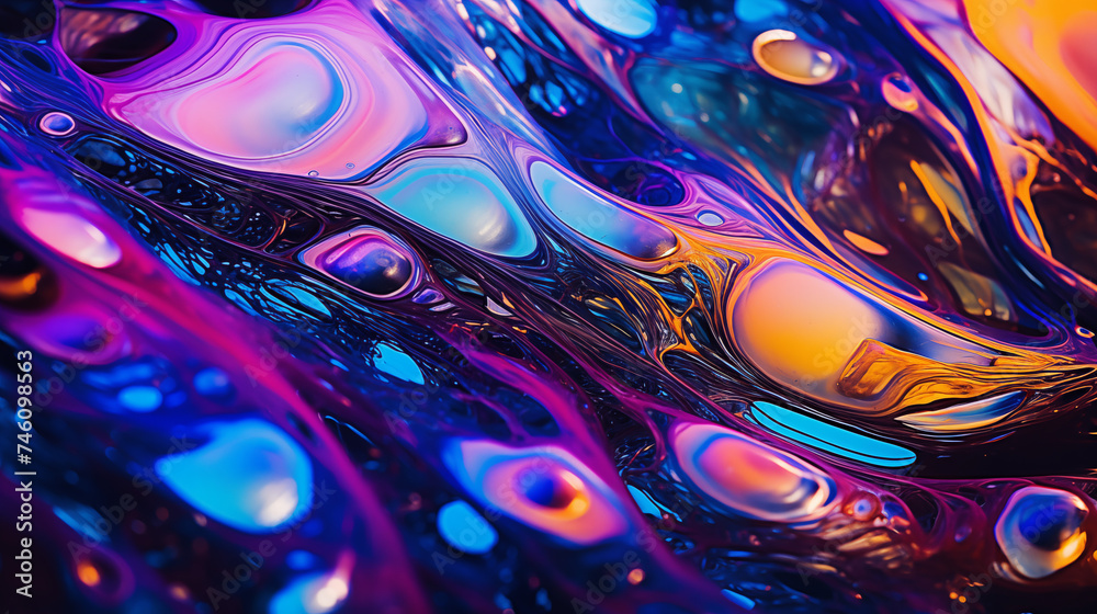 Do Salonu - Holograficzna tapeta - technika i sztuka. Niebieskie, różowe i fioletowe odcienie tła cieczy o... #746098563