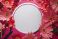Kwiaty - Biała okrągła kartka i różowe kwiaty - kartka na życzenia #1355369265