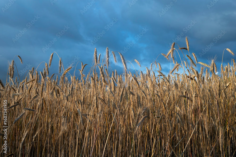 Panel Szklany Pejzaże - pole ze zbożem na tle burzowego nieba #1607341955