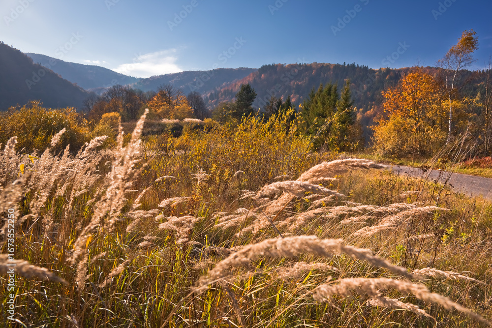 Panel Szklany Pejzaże - Ul. Leśna w Muszynie na Majdanie w piękny, jesienny dzień #1673552250