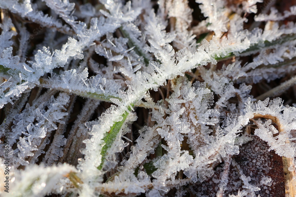 • zimowe pejzaże rośliny pokryte kryształkami lodu