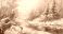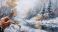 • Osoba maluje pędzlem zimowy pejzaż przy użyciu farb akwarelowych. Scena przedstawia śnieżne widoki i uważnie dobierane detale.
