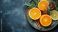 Panel Szklany Owoce - Citrus fruit slices with herbs and spices on a plate. #1468608013