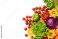 • Assortment of fresh vegetables and fruits isolated on transparent background