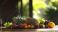 • Fresh fruit composition on rustic background, suitable for nutrition guides or product packaging.