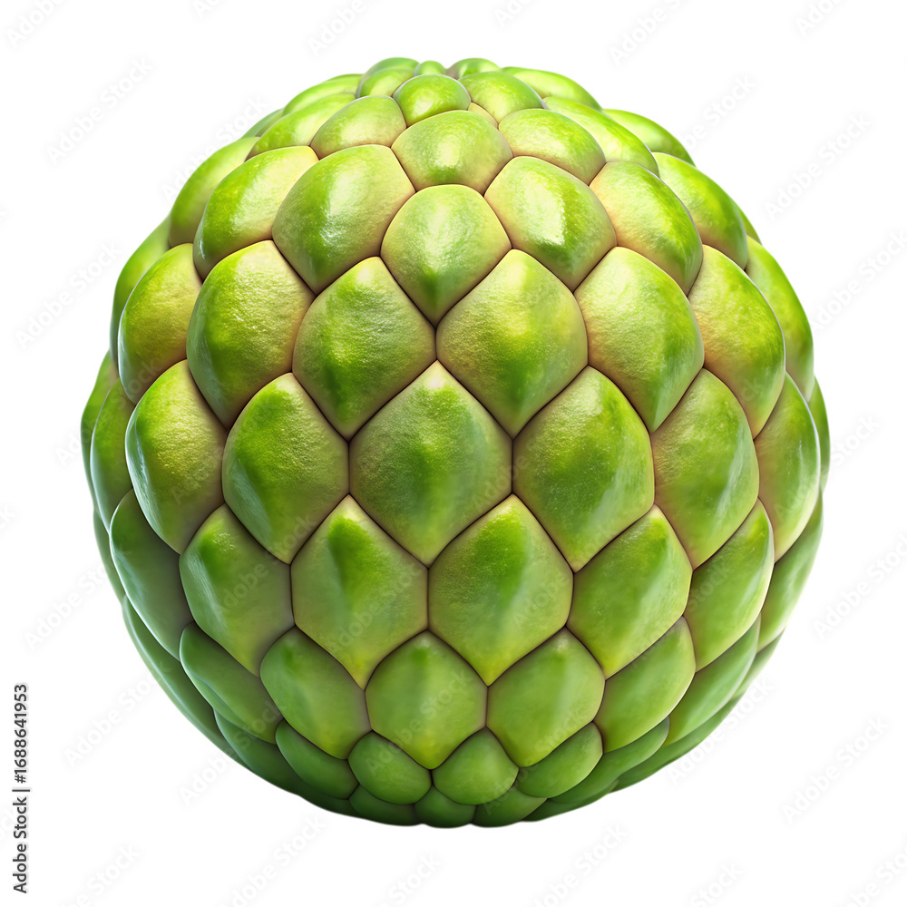 • 3 D rendered cherimoya fruit with textured green scales isolated on a transparent background tropical fruit