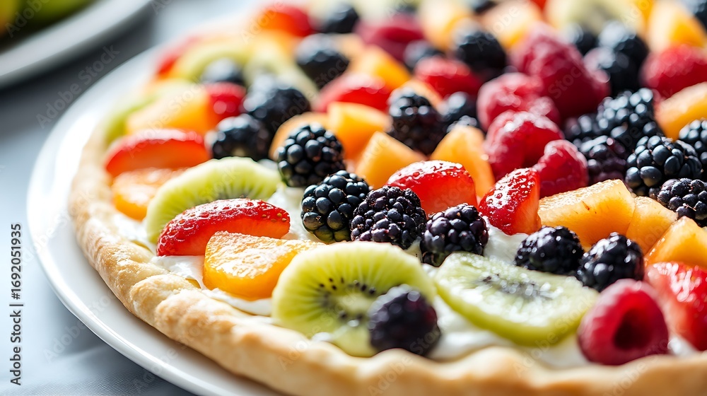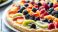 Panel Szklany Owoce - Close up of a fruit pizza with plate on table #1692051935
