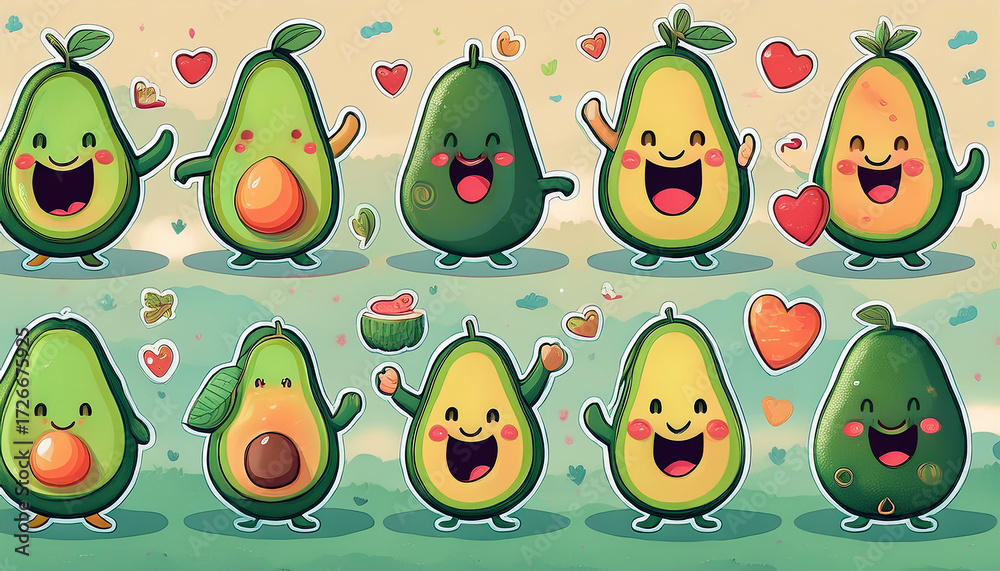 Panel Szklany Owoce - avocado fruit stickers and characters #1726675925