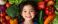 Panel Szklany Owoce - Child surrounded by colorful vegetables #1776649279