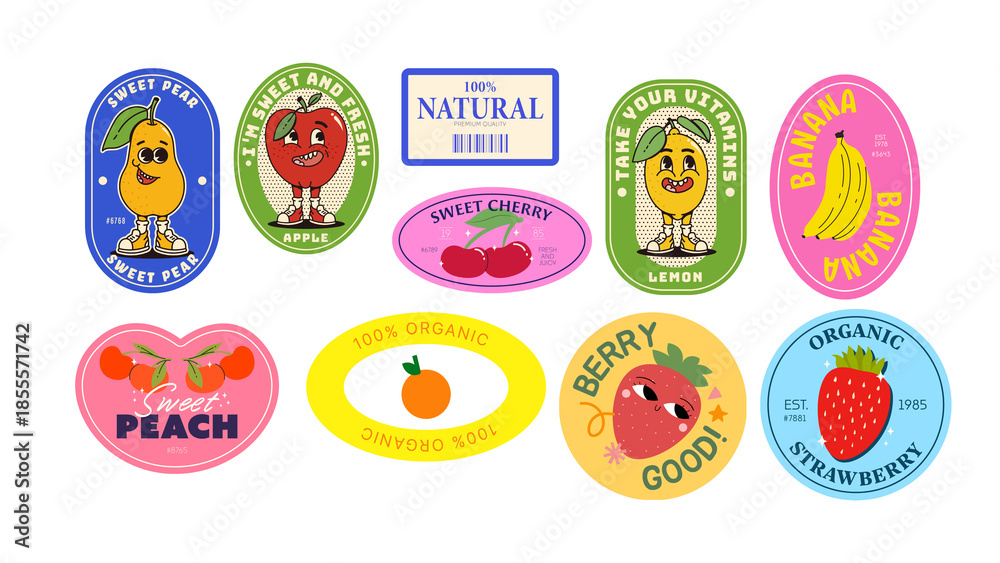 Panel Szklany Owoce - set of easter eggs fruits set stickers food fruit tag #1855571742