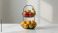 • Black iron dual-tier fruit basket with assorted fresh produce on a white kitchen surface, kitchen storage