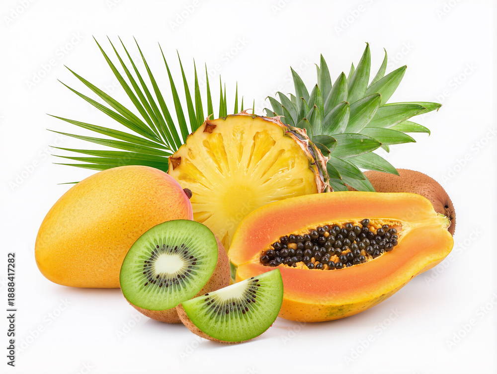 Panel Szklany Owoce - tropical fruit on white background #1888417282