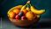 • Fresh fruit bowl banana with orange, grape, lemon, lime, apple, tomato generated by AI