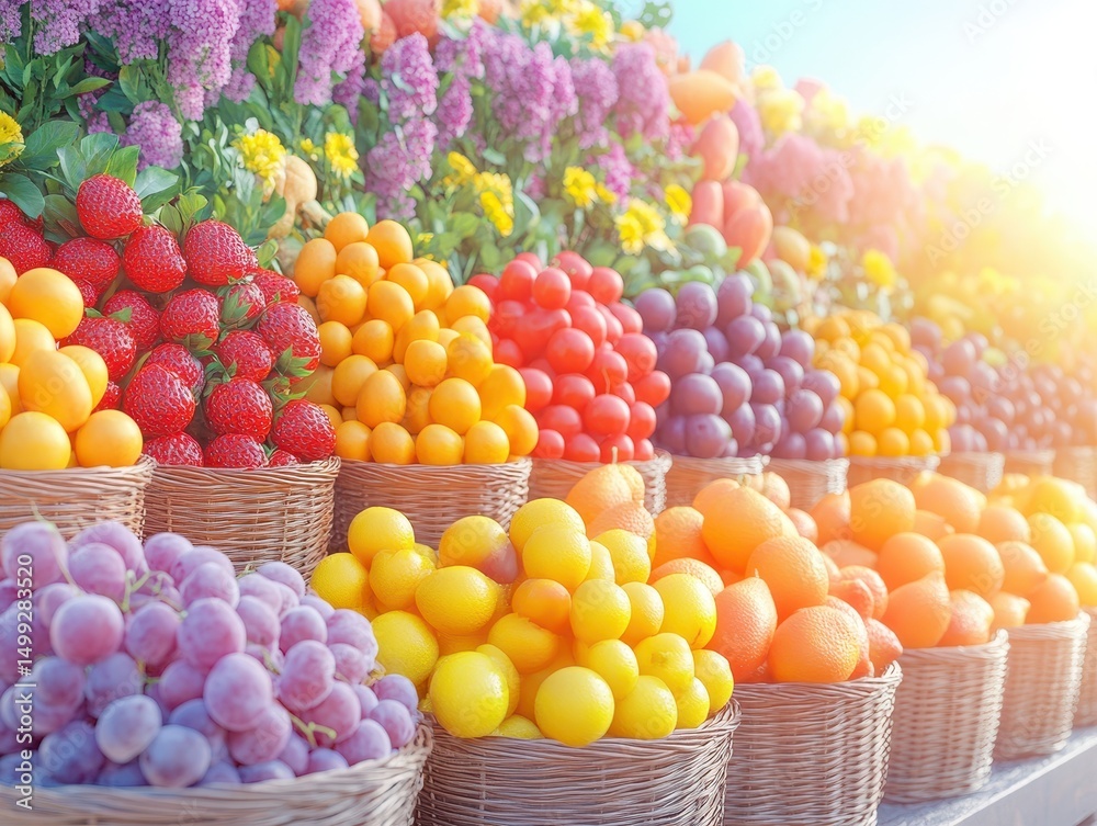 Panel Szklany Jedzenie i Napoje - Różnorodność owoców na straganie #1499283520