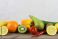 • Zdrowy tryb życia - owoce i warzywa - gruszka, cukinia, pomidory, pamarańcza, czerwona papryka