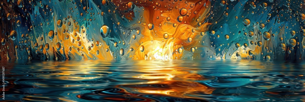 • Abstrakcyjny pejzaż wodny z kroplami deszczu i efektem rozmycia