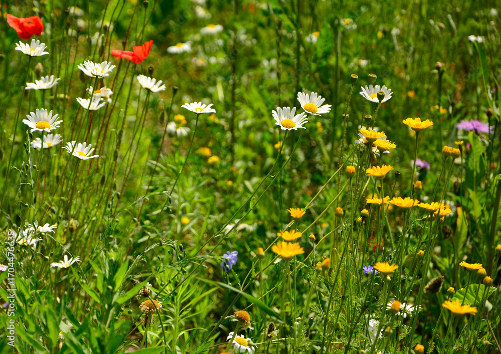 • łąka kwietna z kolorowymi kwiatami, kolorowe kwiaty polne, kwiaty dla owadów zapylających, a flower meadow with colorful flowers,