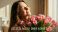• Zbliżenie na twarz młodej kobiety o słowiańskiej urodzie, która budzi się w słonecznej sypialni. Trzyma w dłoniach ogromny bukiet świeżych, różowych tulipanów. Życzenia Szczęśliwego Dnia Kobiet