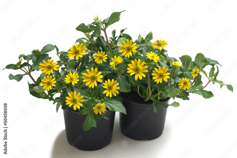 Panel Szklany Kwiaty - Sanvitalia in a pot on a white background #50458038