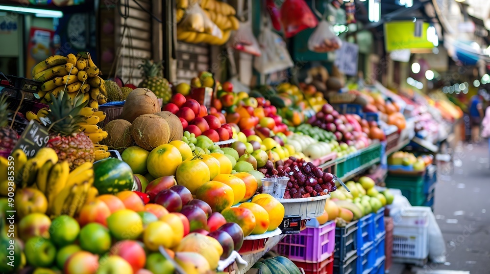 • Fresh fruits sold daily at the Carmel Market Shuk Hacarmel This market is one of the largest and most famous in Tel Aviv : Generative AI