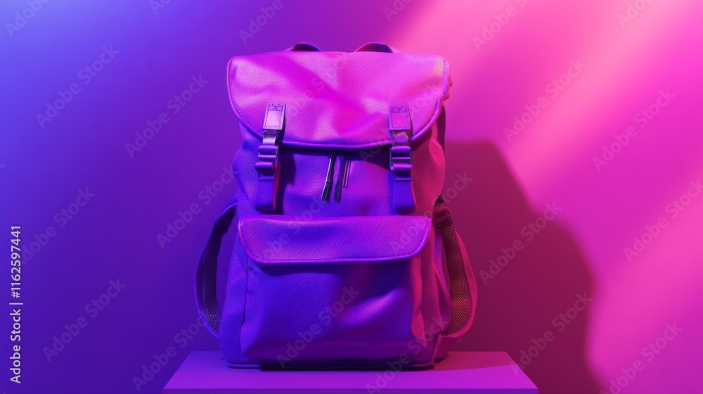• Violet backpack set against a bright, vibrant background featuring ai-enhanced design for fashion and travel themes