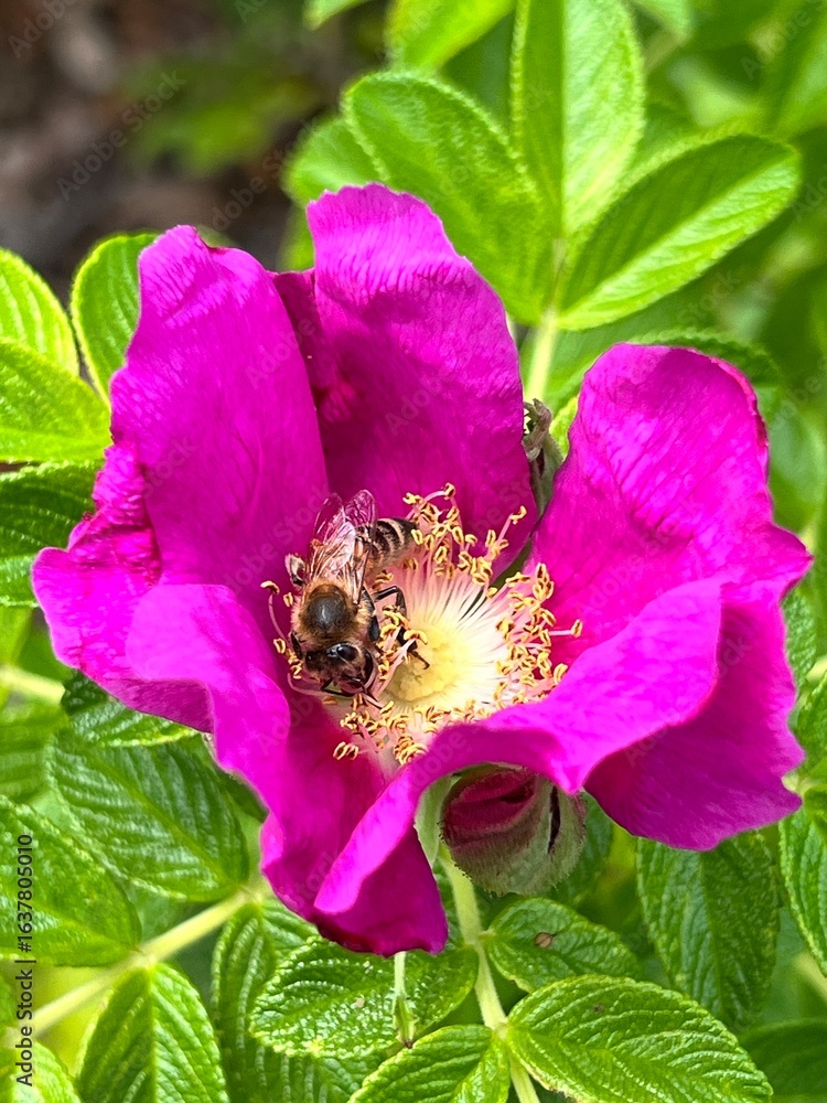 Fioletowy Panel Szklany - Pszczoła na kwiecie róży #1637805010