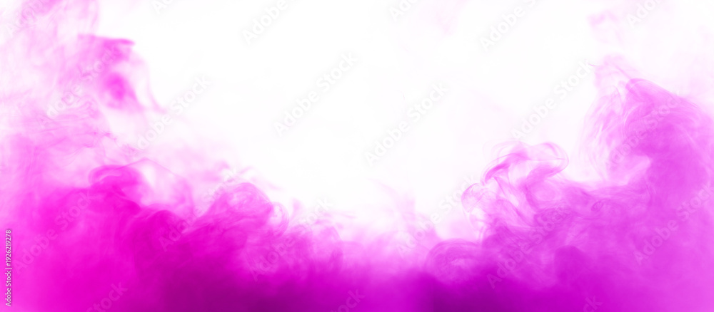 • Colorful smoke with pink purple flare isolated on a white background. abstract neon gradient cloud with splash. thick swirling dust and powder creating a psychedelic light design. smog effect