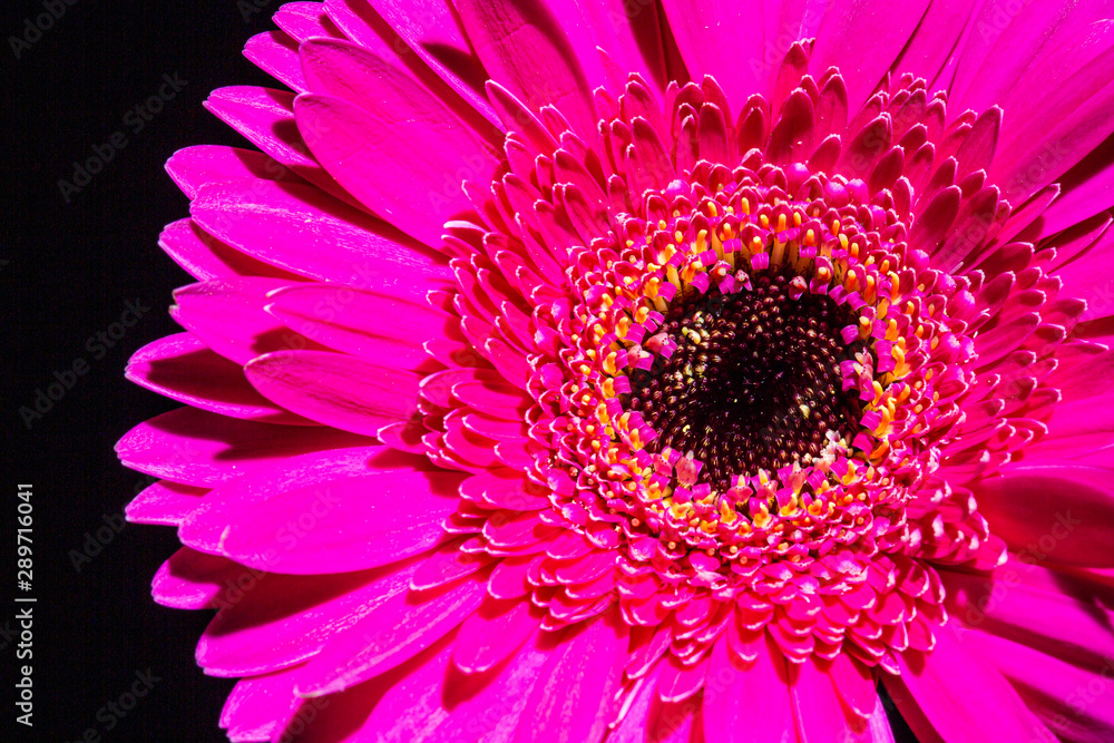 Fioletowy Panel Szklany - Kwiat na czarnym tle. Fioletowa gerbera. Wyizolowane z tla. Ciete kwiaty. Rosliny z domowego ogrodu. #289716041